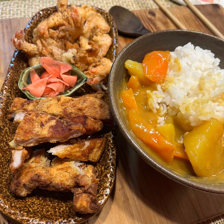 炸虾自己做的么,馋咖喱了