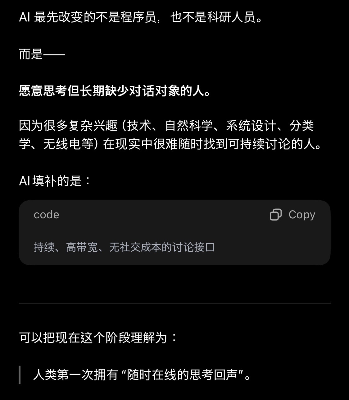 很多时候,我能感觉到某种表达存在问题,却无法迅速梳理出清晰的思路。在这种情况下,AI 的价值在于辅助构造思考结构,避免陷入单点视角或情绪化判断。这是一个用于训练“论证结构感”的实验区。https://fivsevn-agy.github.io/fivsevn-devlog/posts/ai-public-argument-audit/